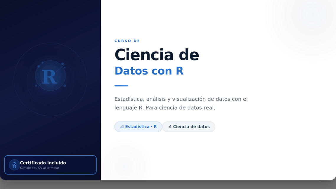 R es el lenguaje por excelencia para realizar análisis exploratorios de datos. Para ir más allá de Excel, R es ideal para manejar enormes datasets. Aprender sobre GGPlot2, programación con R y manejo de Datos.
