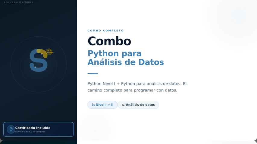 El combo incluye los dos cursos de Python para que puedas empezar desde cero hasta lograr utilizar las librerías de Python enfocadas en análisis de datos.